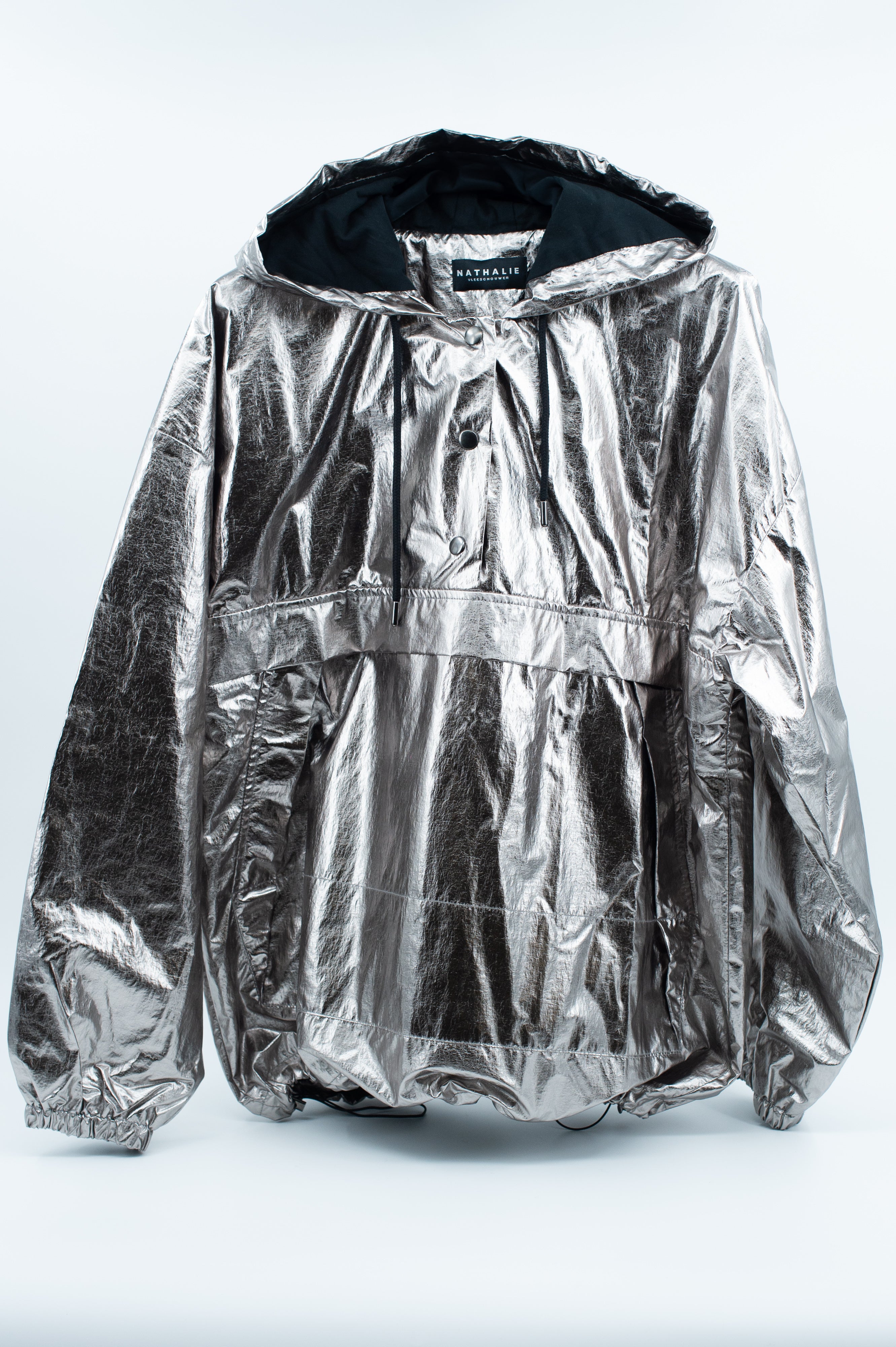 Metallic anorak met kap en kangoeroezak. Een one-of-a-kind showstopper, beschikbaar in zeer beperkte oplage.