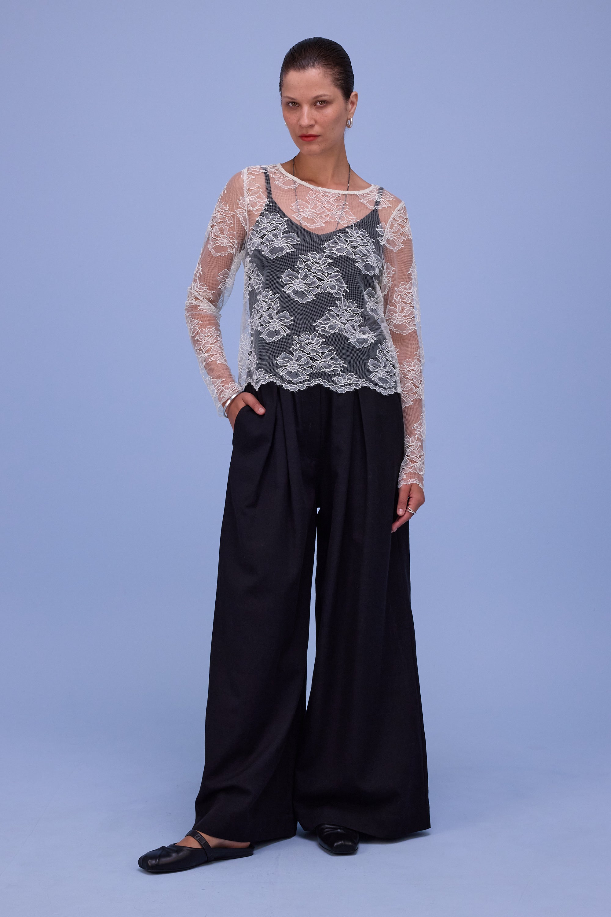 Topje met fijne bandjes in ribkatoen blend. Hearth-shape decolleté met lief strikje. Basisstuk voor eindeloze combinaties dat ook solo mag gezien worden.