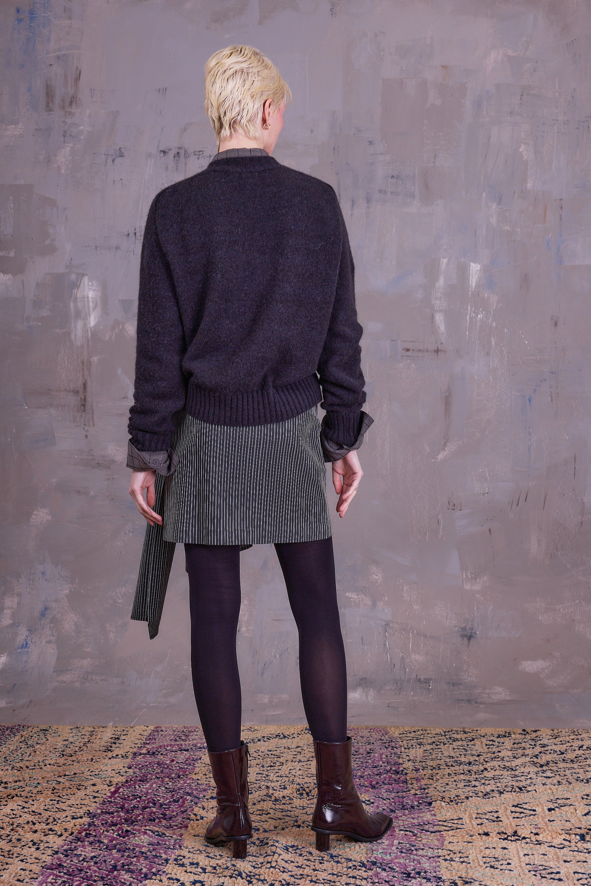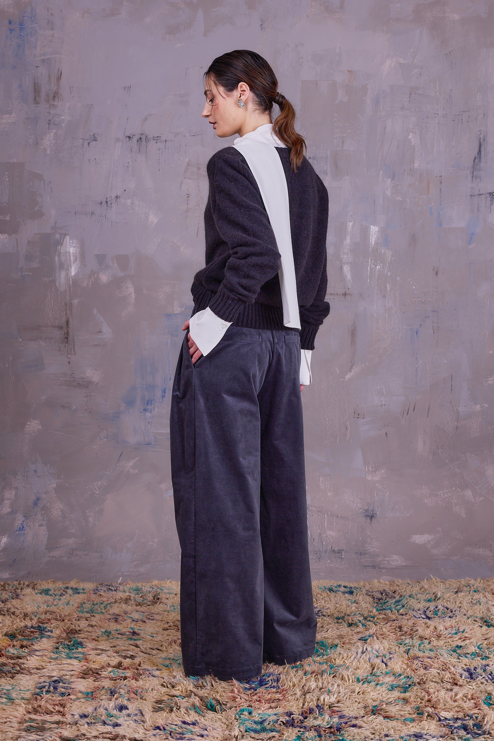 Pullover mit V-Ausschnitt aus Baumwoll-Alpaka-Wollmischung, gestrickt in Belgien. Ein vielseitiger Klassiker.