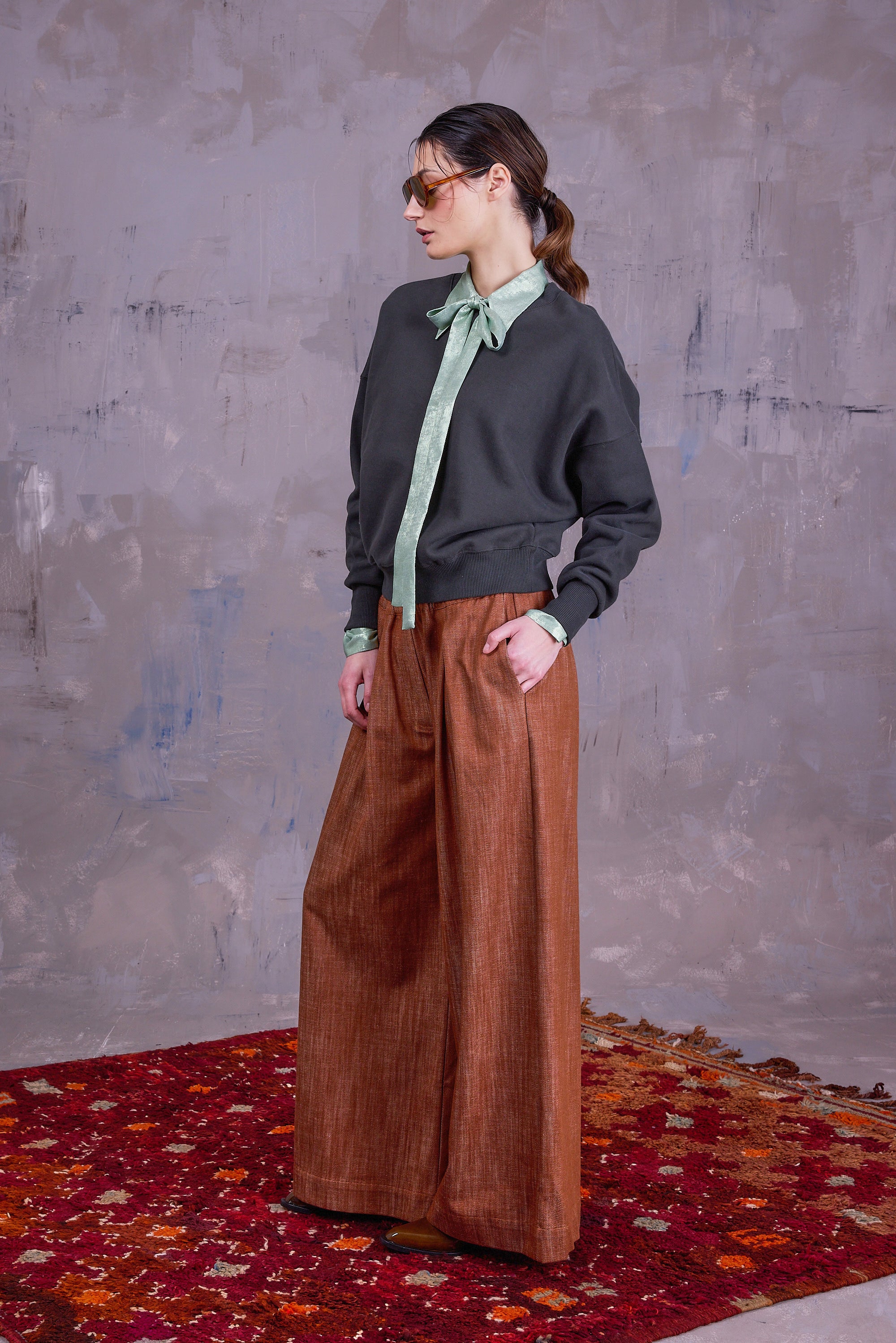 Kuscheliger Pullover mit Cut-Out auf der Rückseite. Das überraschende Detail verleiht diesem Pullover aus weichem Baumwollmolton seinen eigenen Charakter.