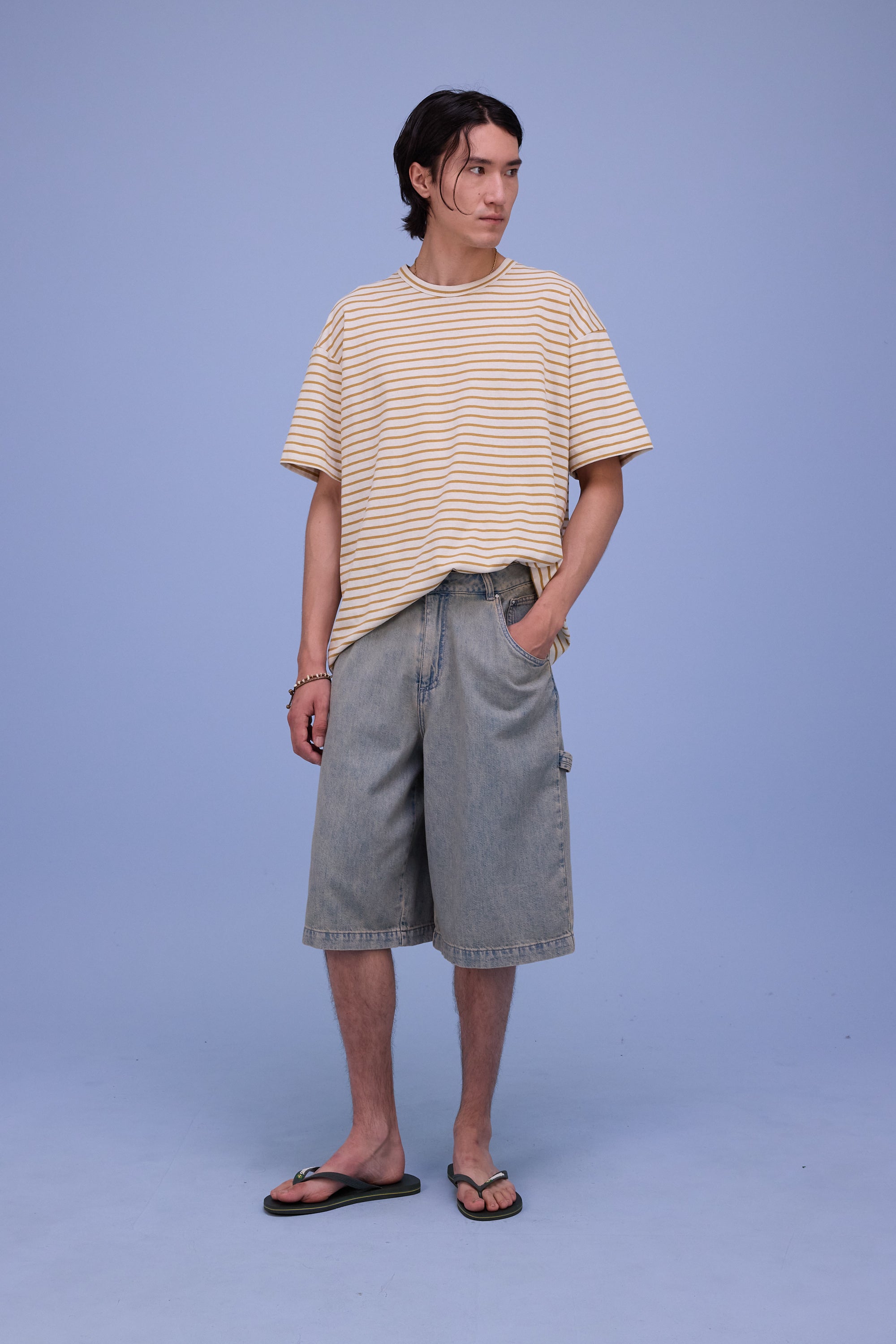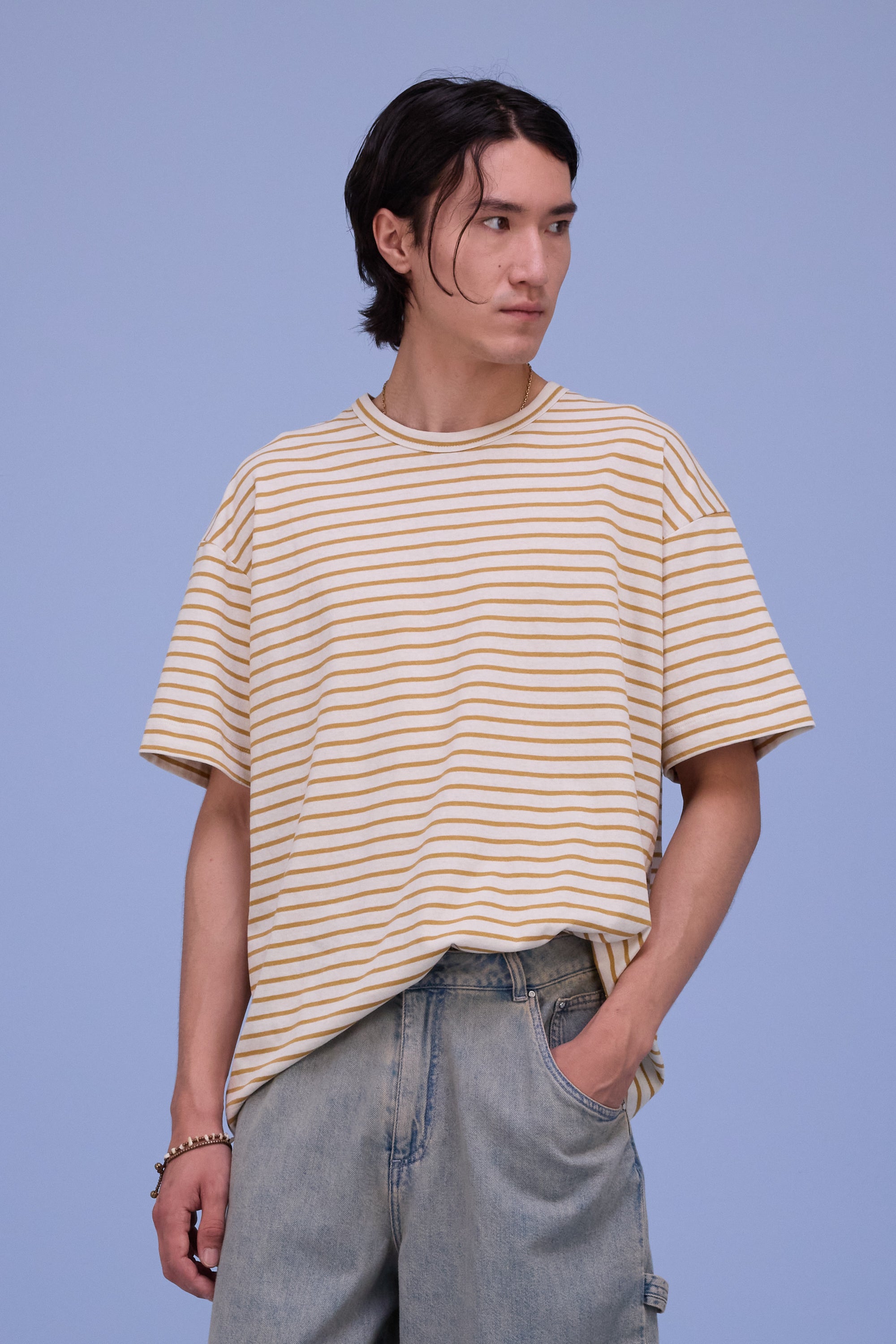 Loose-fitting T-shirt with dropped shoulders in Breton stripes, made from recycled and organic cotton.