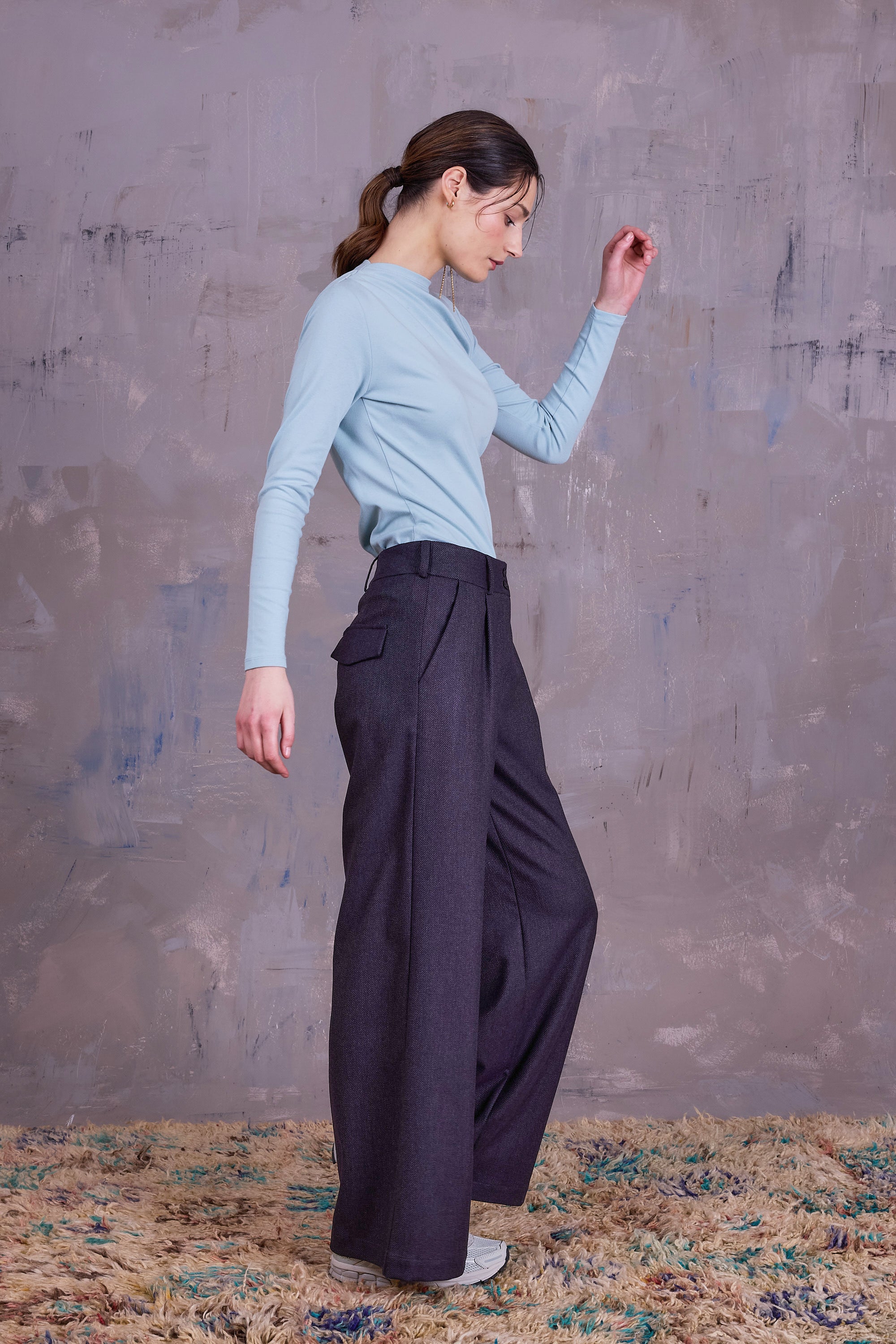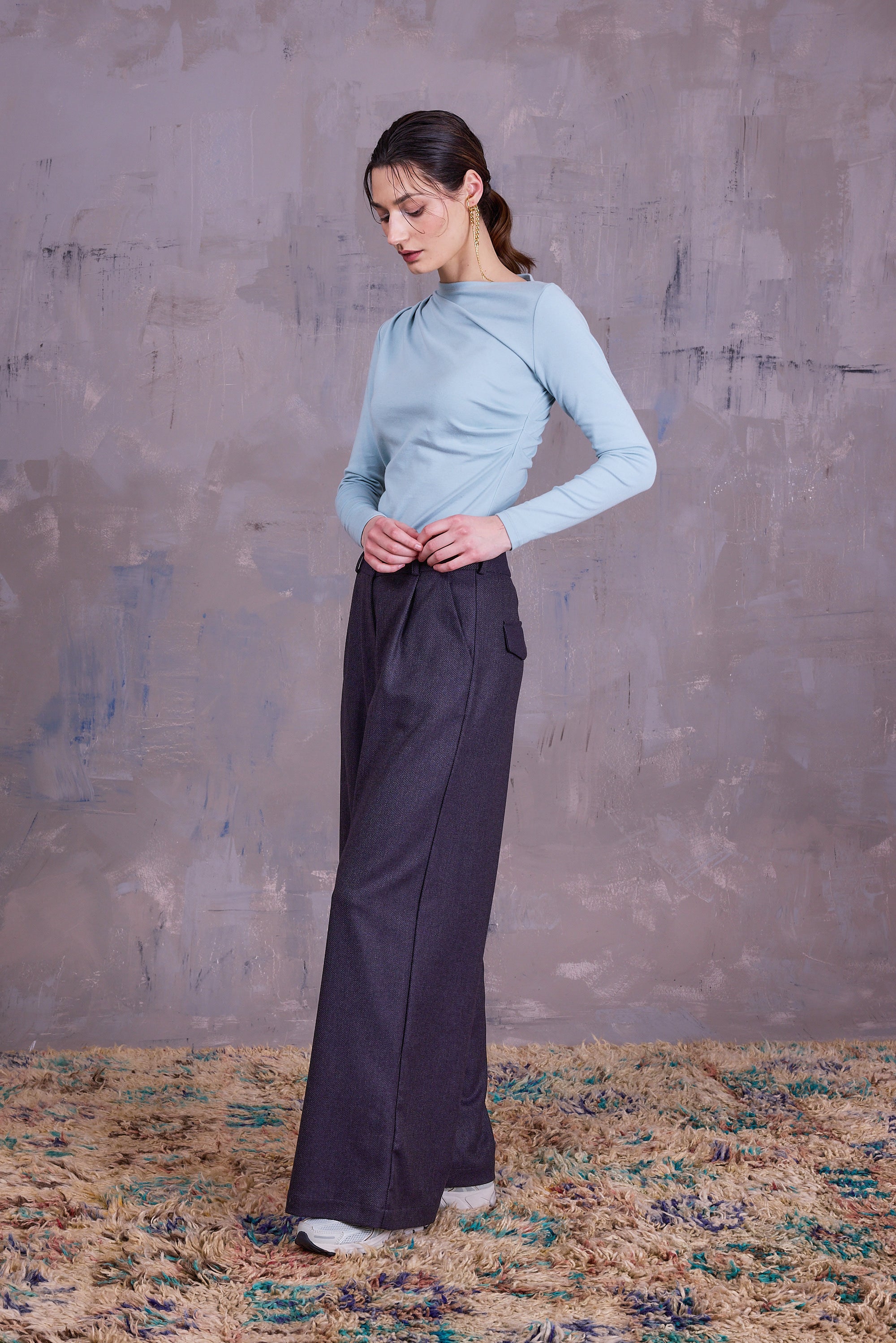 An atypical T-shirt that instantly takes your everyday look to a higher level. Fitted model in stretch cotton with asymmetrical neckline and drape over the chest.