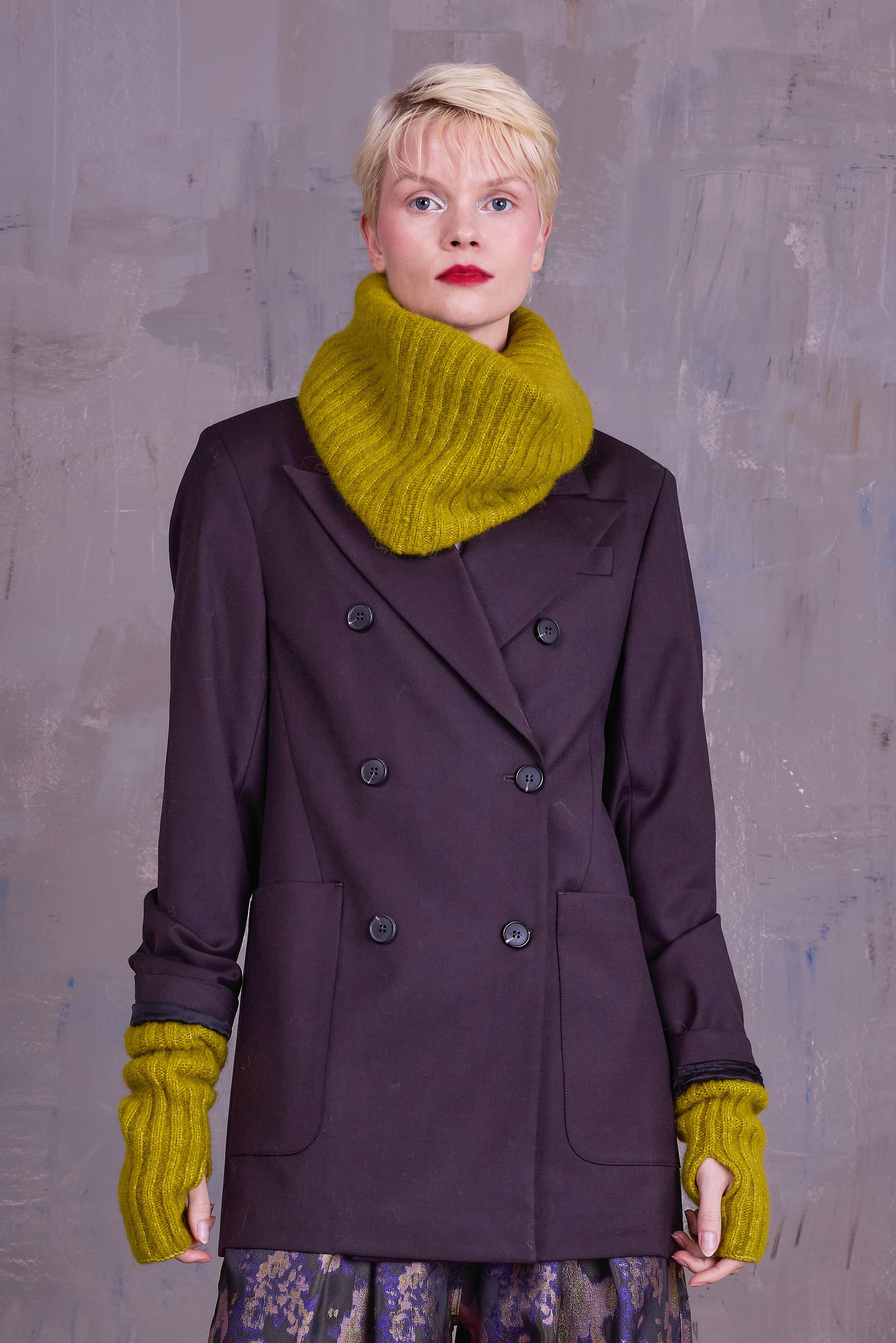 Écharpe tube côtelée, tricotée en Belgique dans un fil duveteux : un mélange 100% naturel de baby alpaga, coton et laine mérinos. Complétez l'ensemble avec les chauffe-bras Gibson.