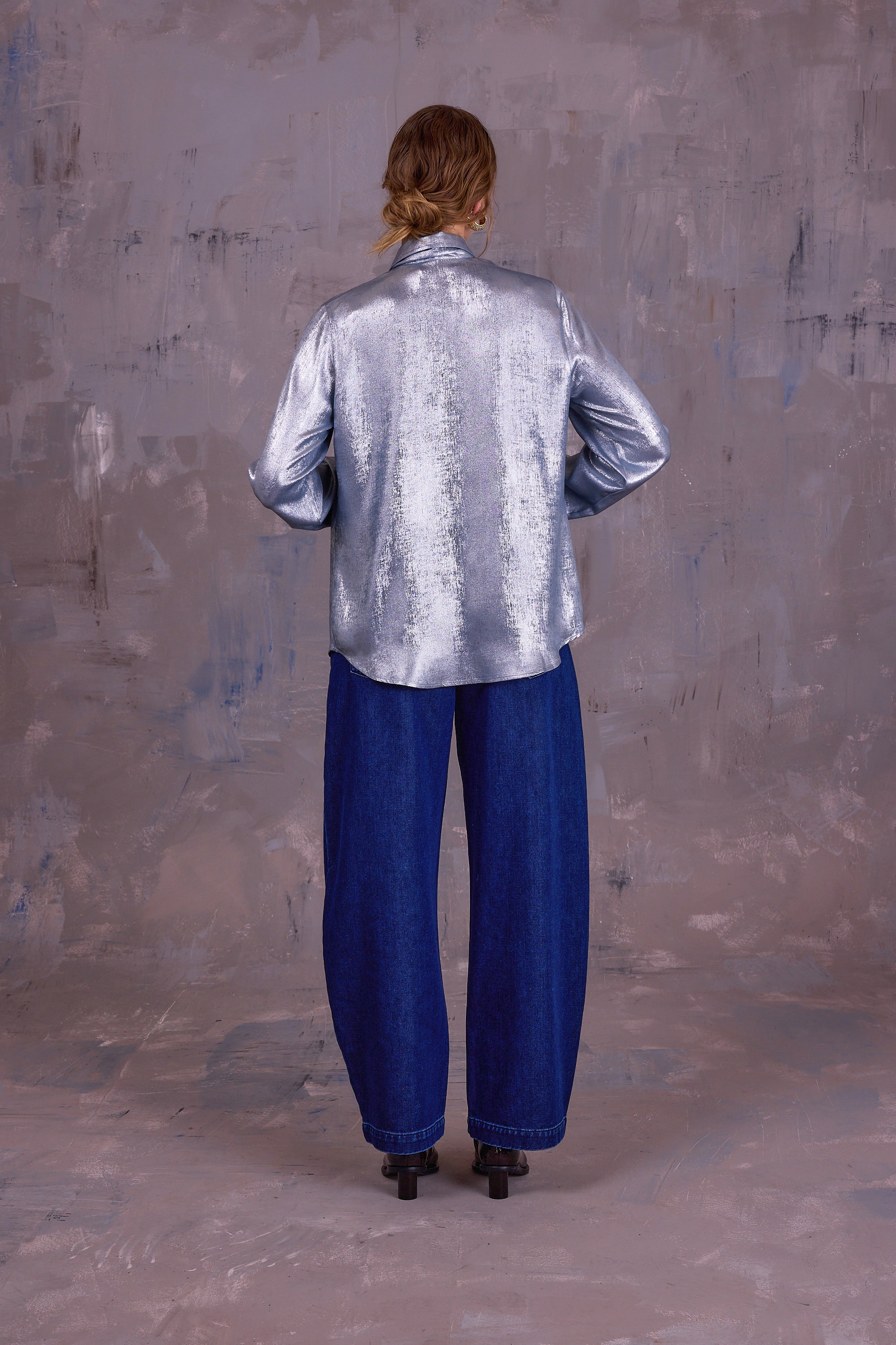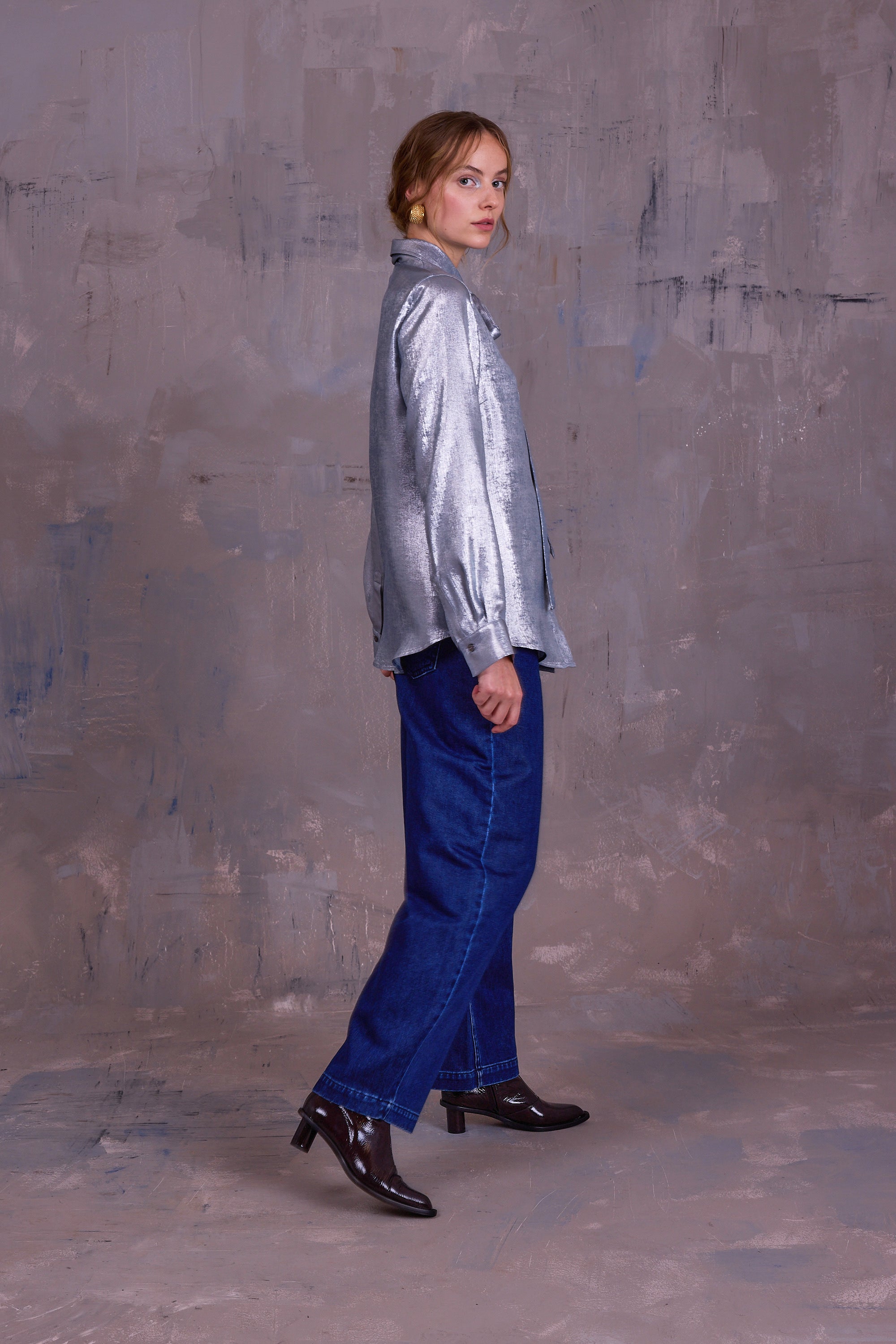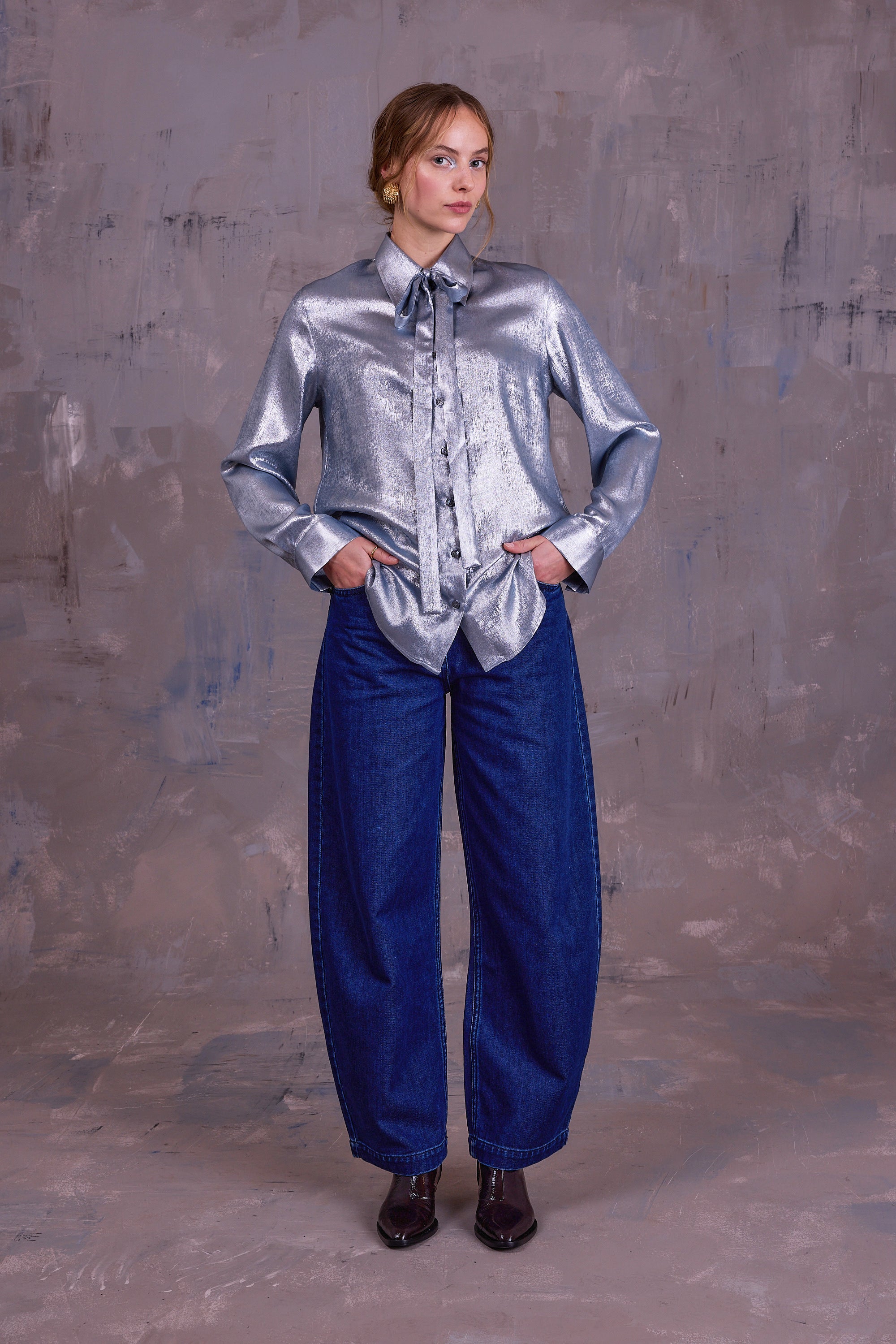 Chemise droite avec un fin ruban que vous pouvez utiliser comme nœud, écharpe ou ceinture. Réalisée dans un tissu brillant qui est merveilleusement fluide, un plaisir à porter.