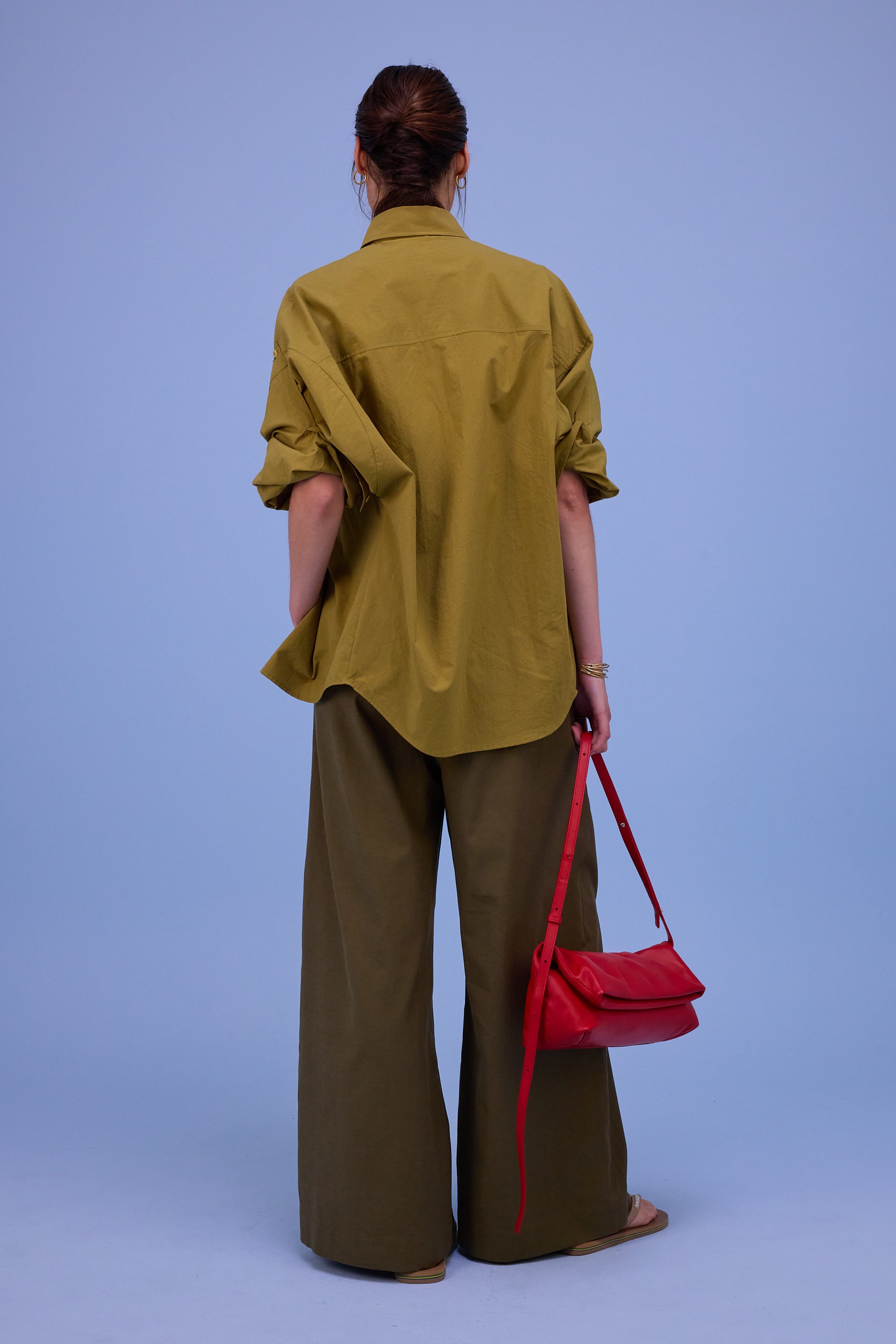 Confectionnée en « popeline froissée », un coton avec un effet naturellement froissé.