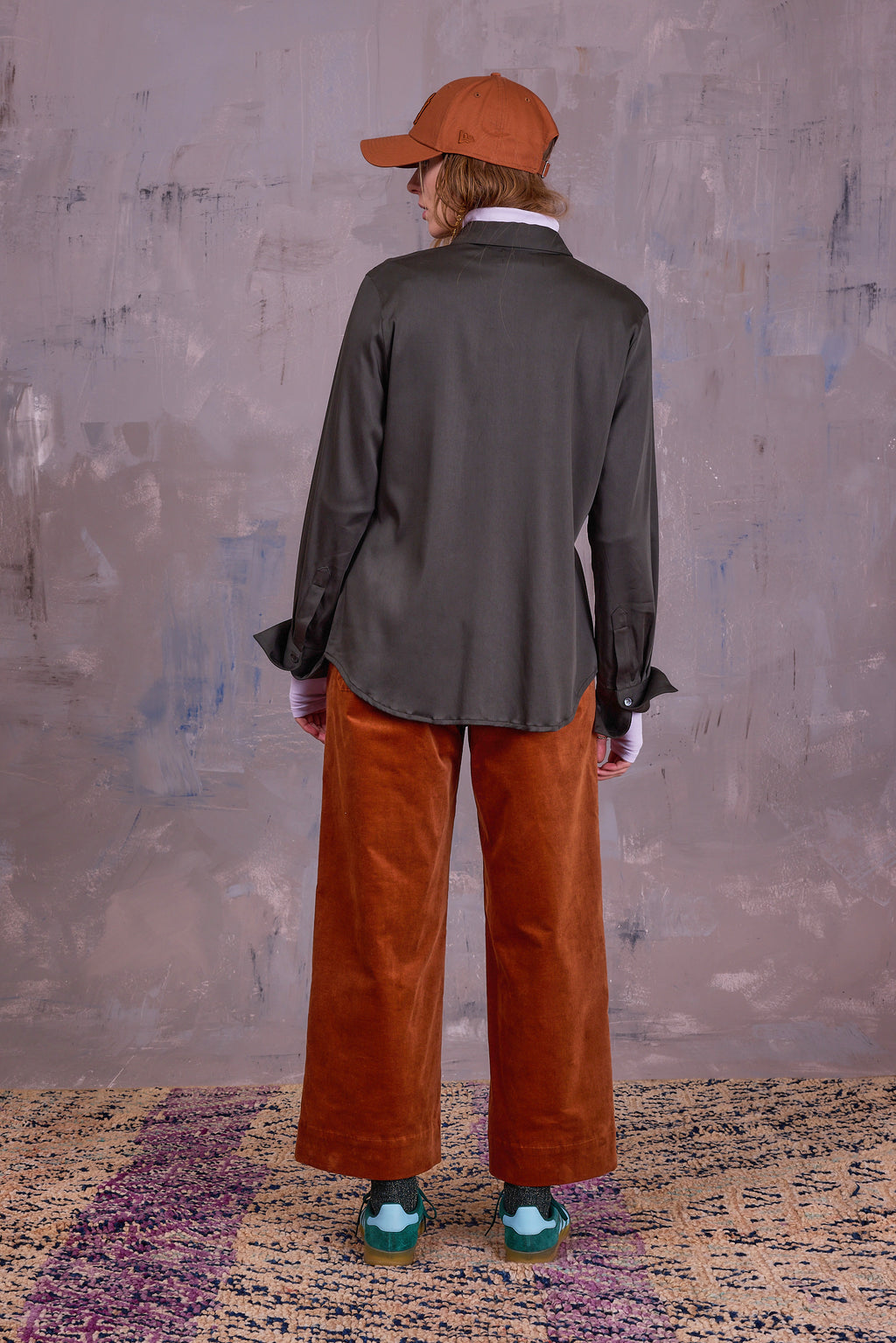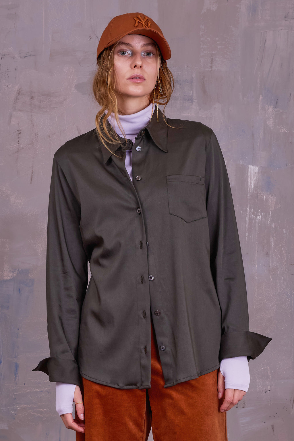 Chemise ajustée avec col pointu et manchette large. La chemise parfaite pour donner plus de caractère à votre tenue. Réalisé en « satin lavé au sable », un satin lourd avec de subtiles variations de couleurs dues au lavage spécial.