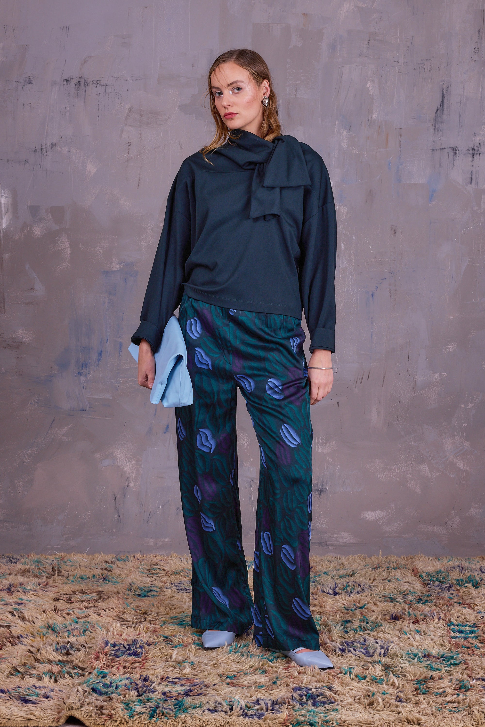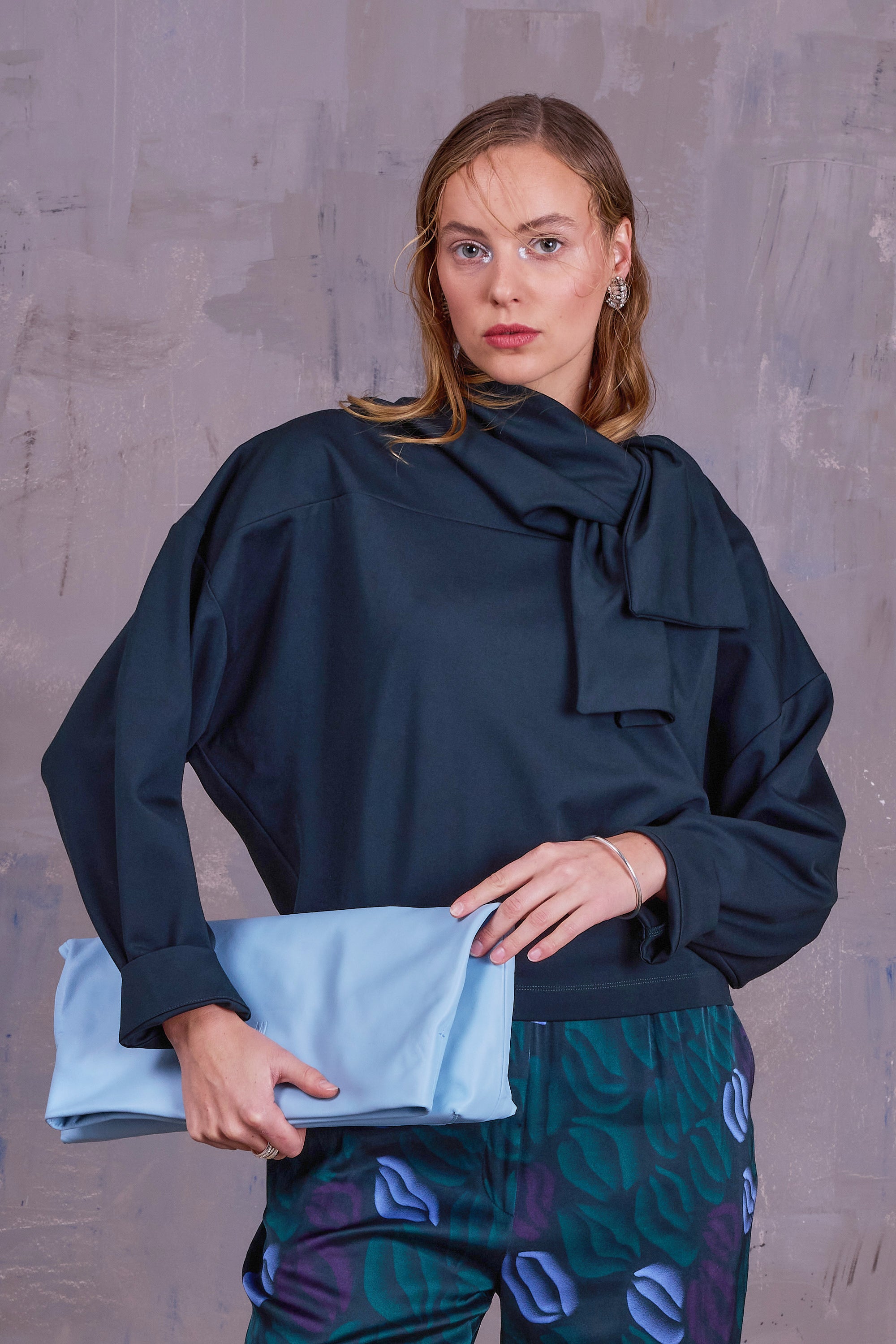 Sweat ample avec grand nœud et manches évasées. Getruda est la preuve qu'un sweat peut aussi être élégant ! Fabriqué en jersey doux et épais, parfait pour l'hiver.
