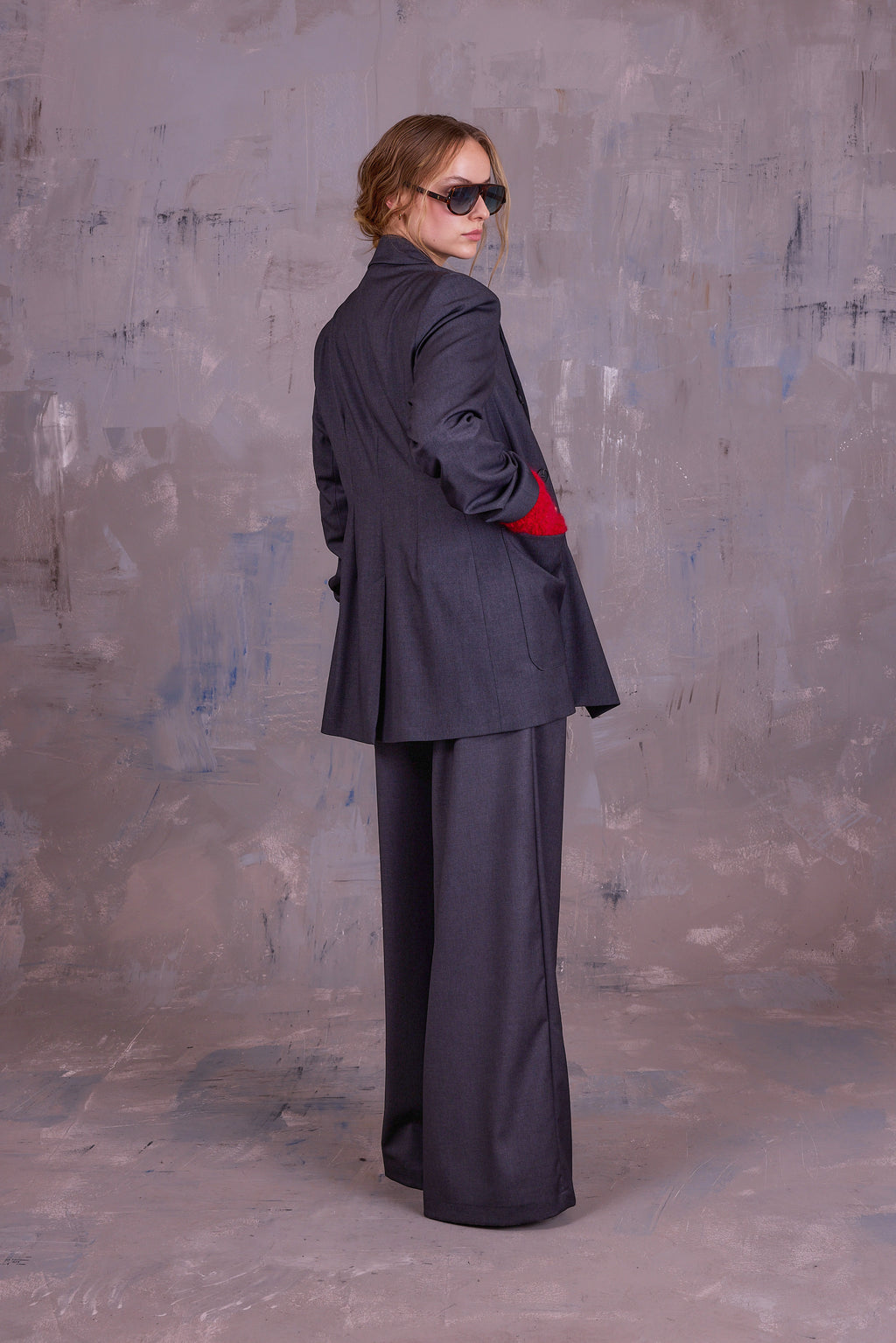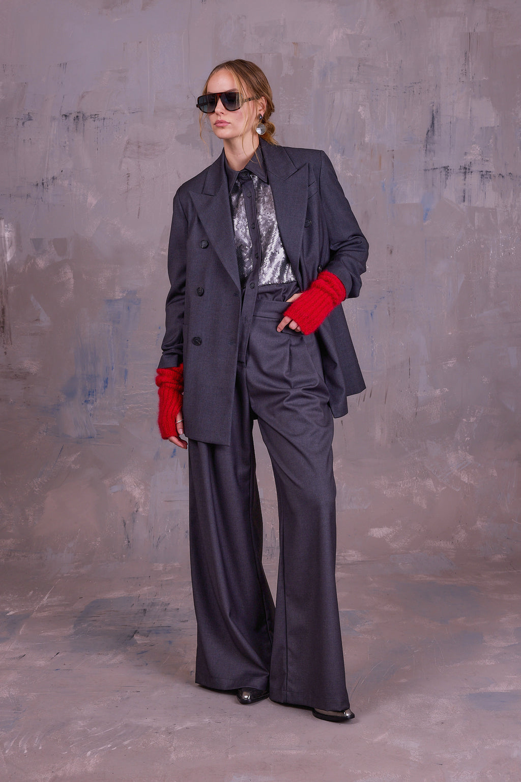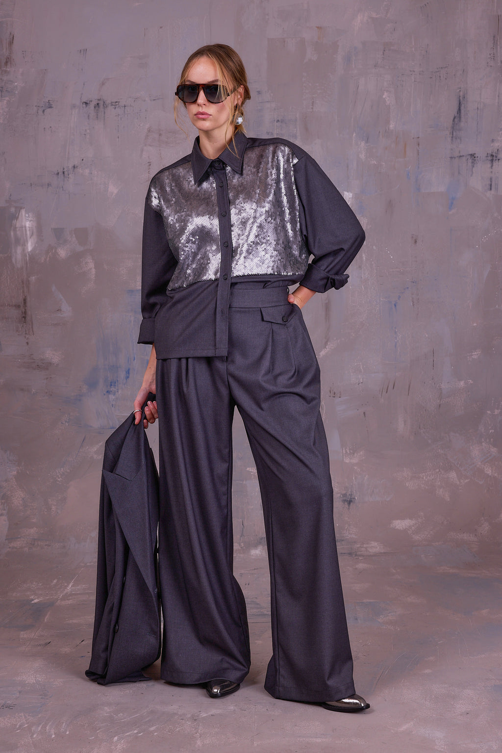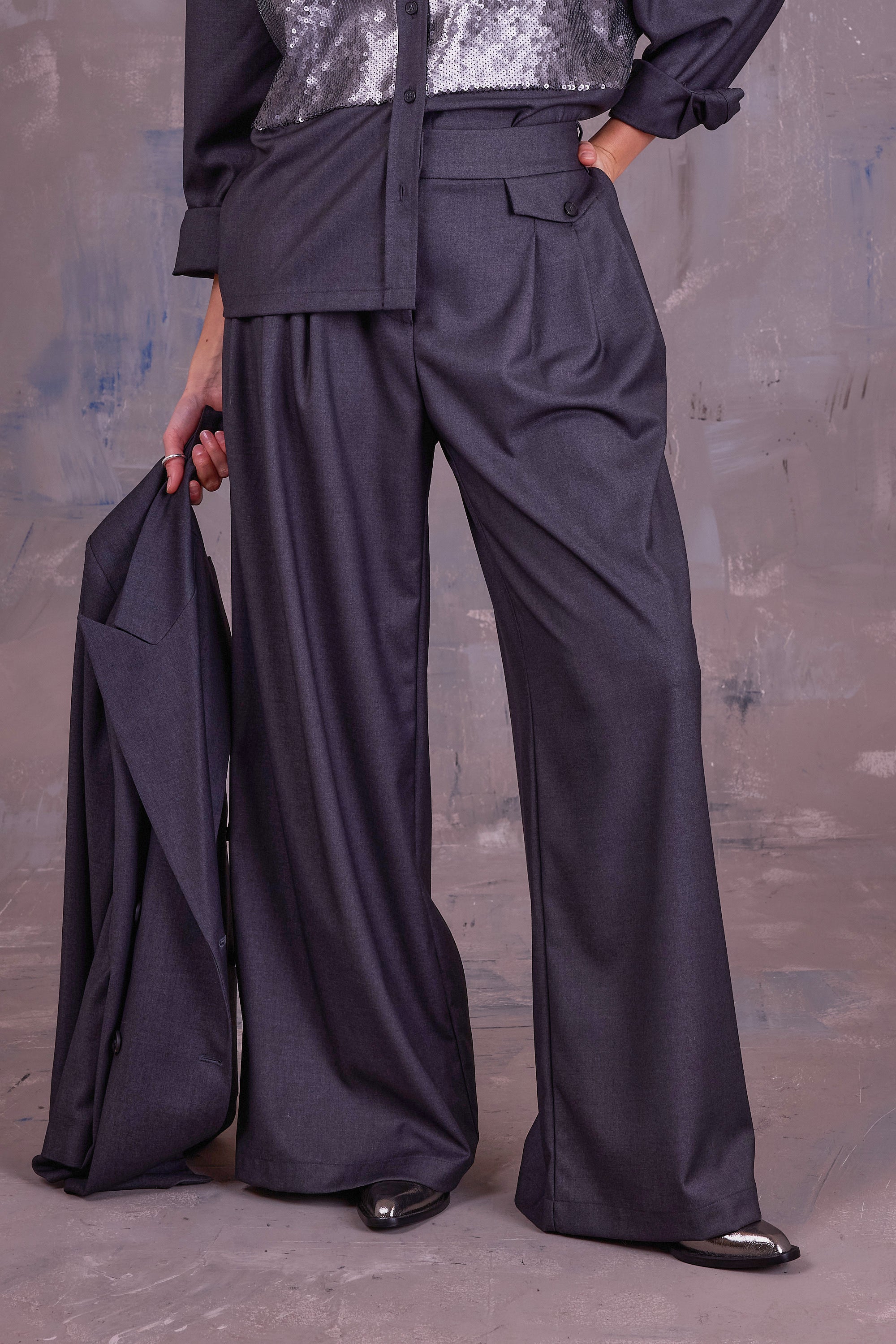 Guy est le nouveau pantalon palazzo incontournable avec sa longueur et son volume généreux au niveau des jambes et sa taille élégante. Son rabat surélevé suggère une poche et le rend immédiatement reconnaissable.