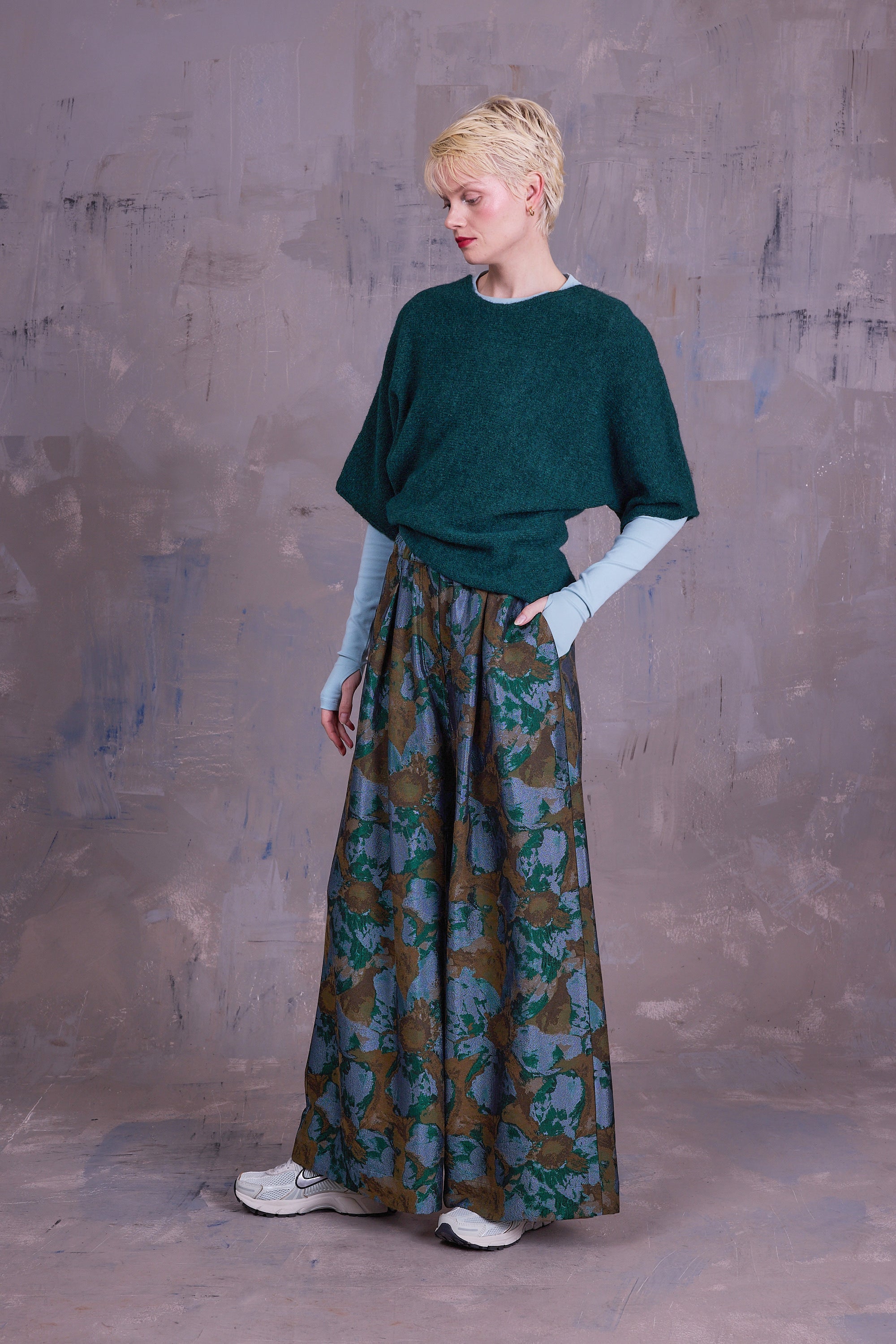 Top semi-transparent en mélange de coton et d'alpaga, tricoté en Belgique. Fini avec un col bateau et des manches sans coutures. Parfait sur une robe ou un haut avec un pantalon taille haute.