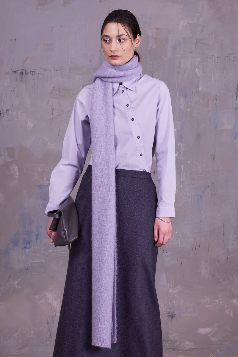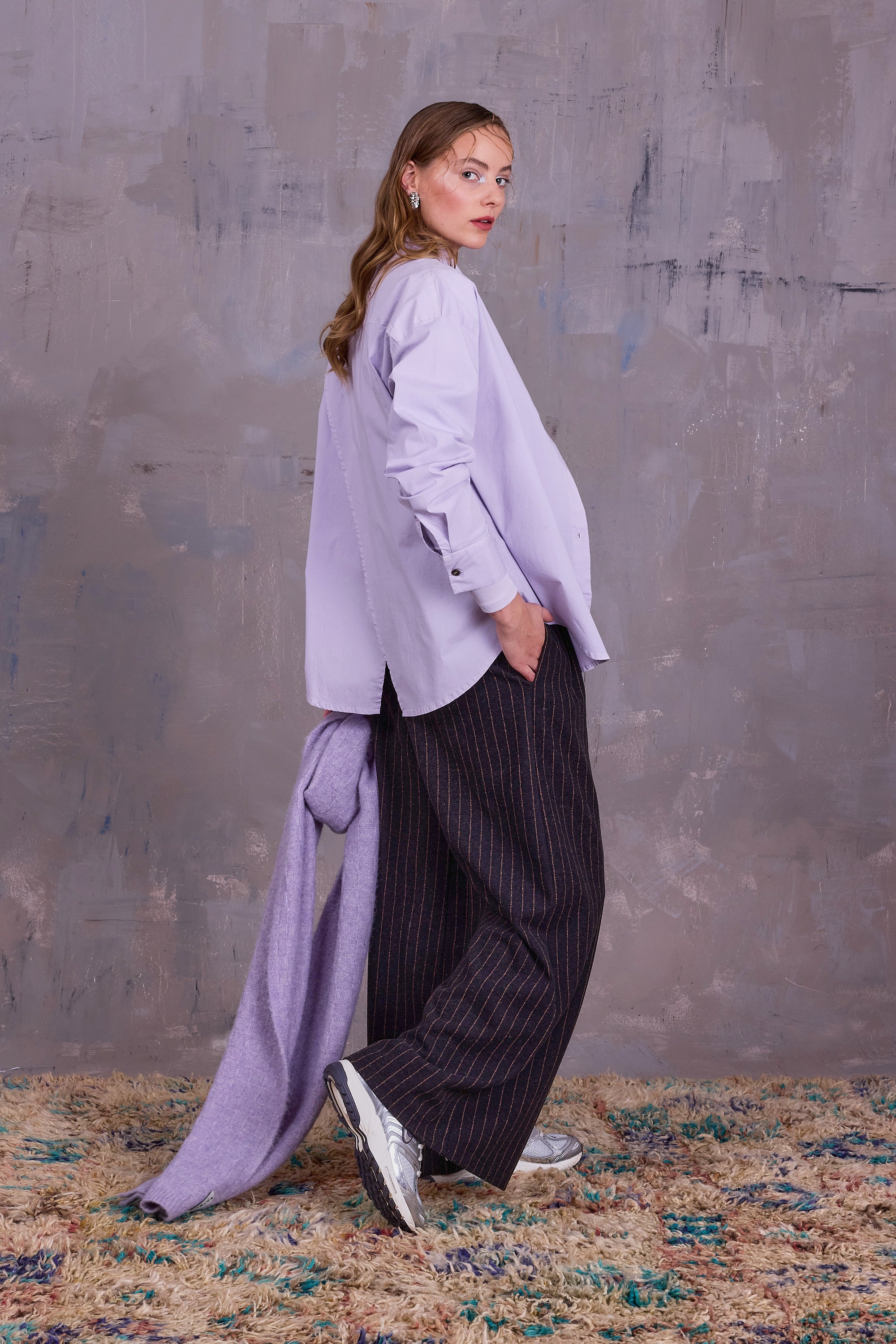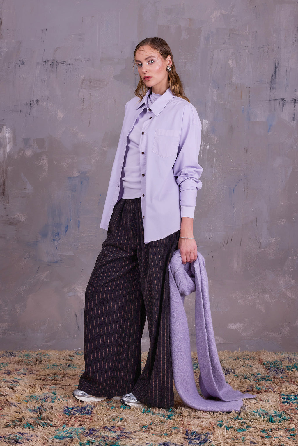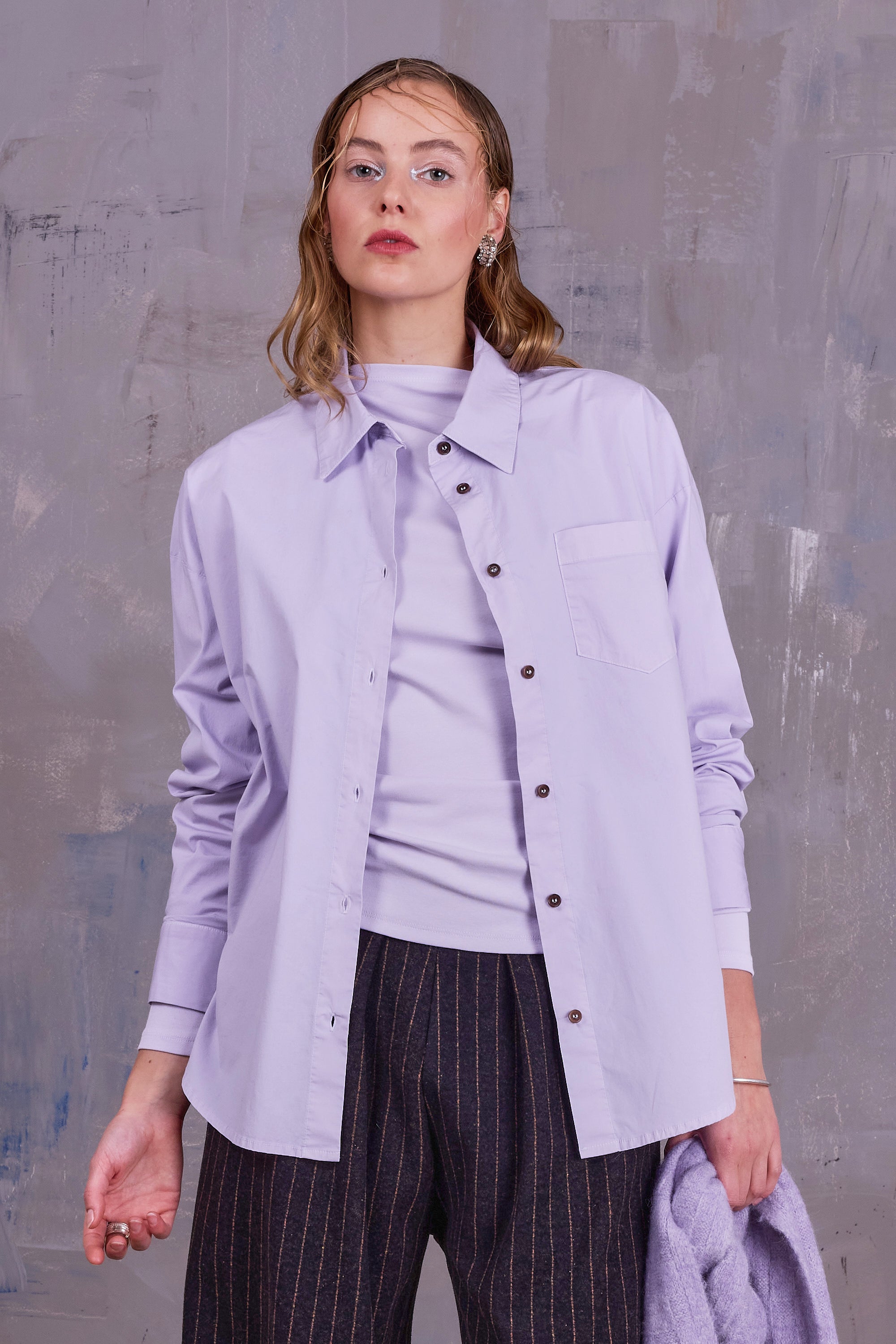 Fabriqué en popeline de coton fine avec un peu de stretch pour plus de confort. Assez souple pour être porté sous un pull ou porter un pull à col roulé en jersey en dessous.