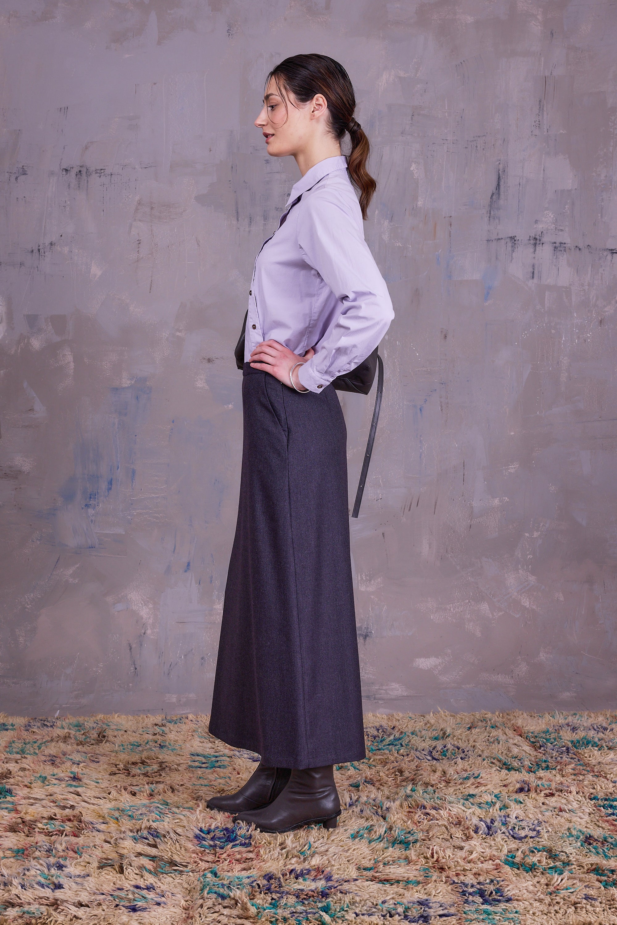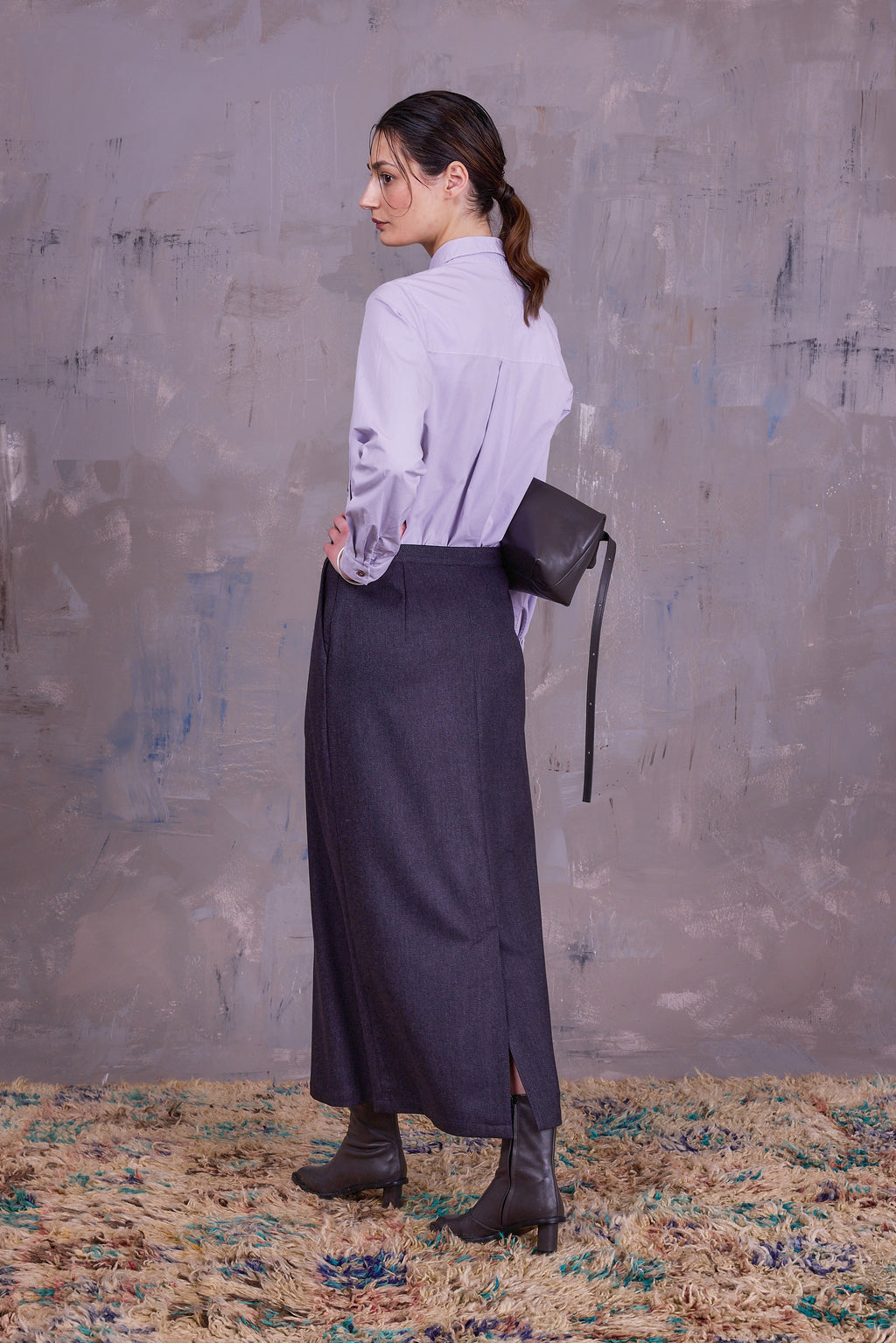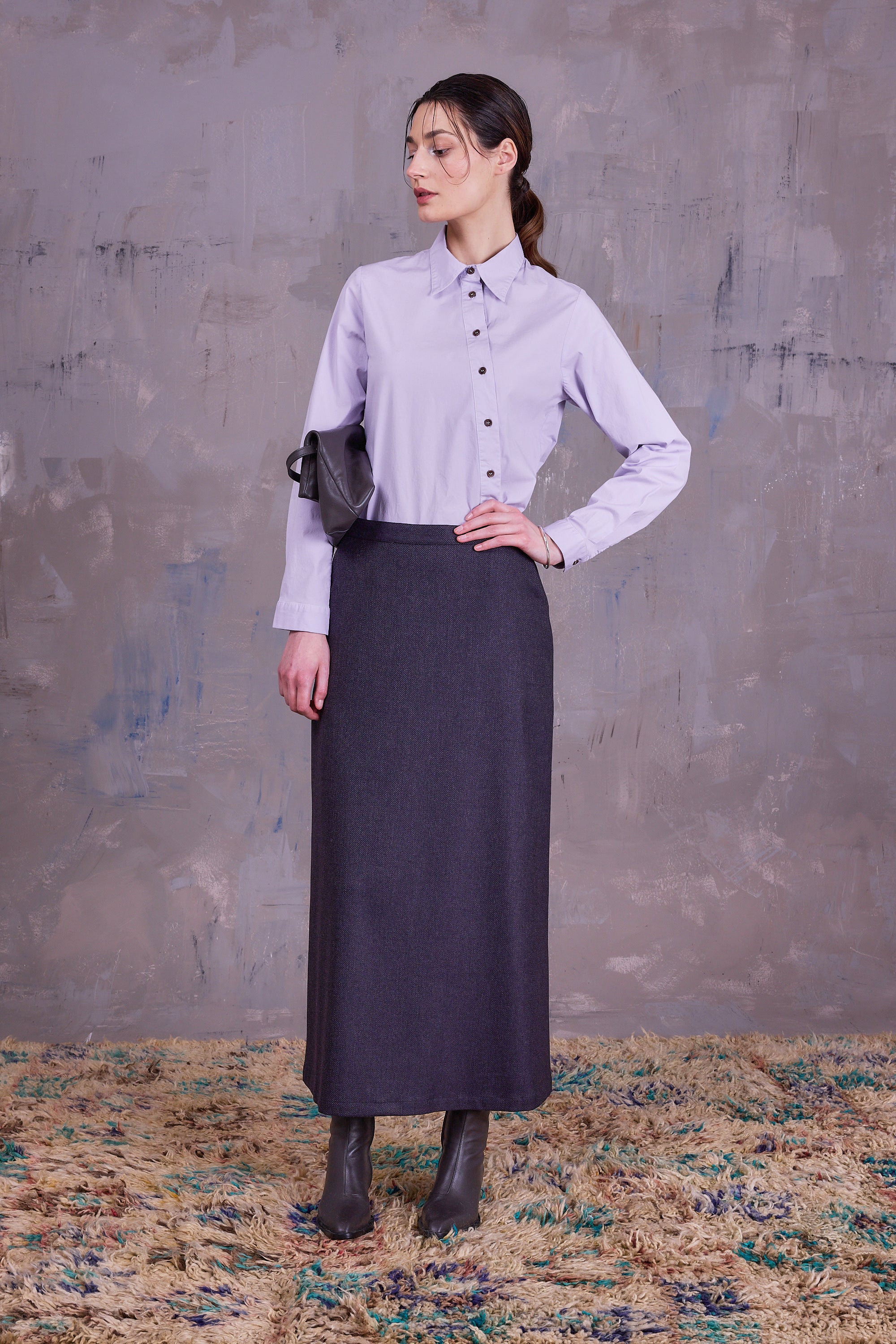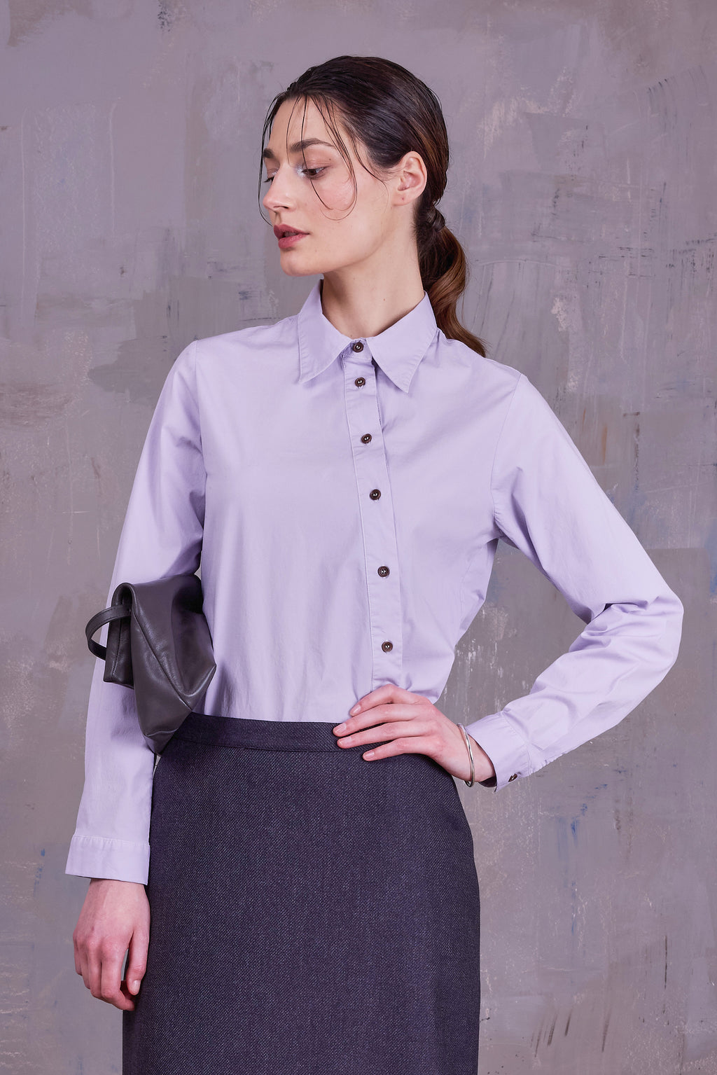 Chemise ajustée avec une rangée de boutons subtilement oblique. Fabriqué en popeline de coton fine avec un peu de stretch pour plus de confort.