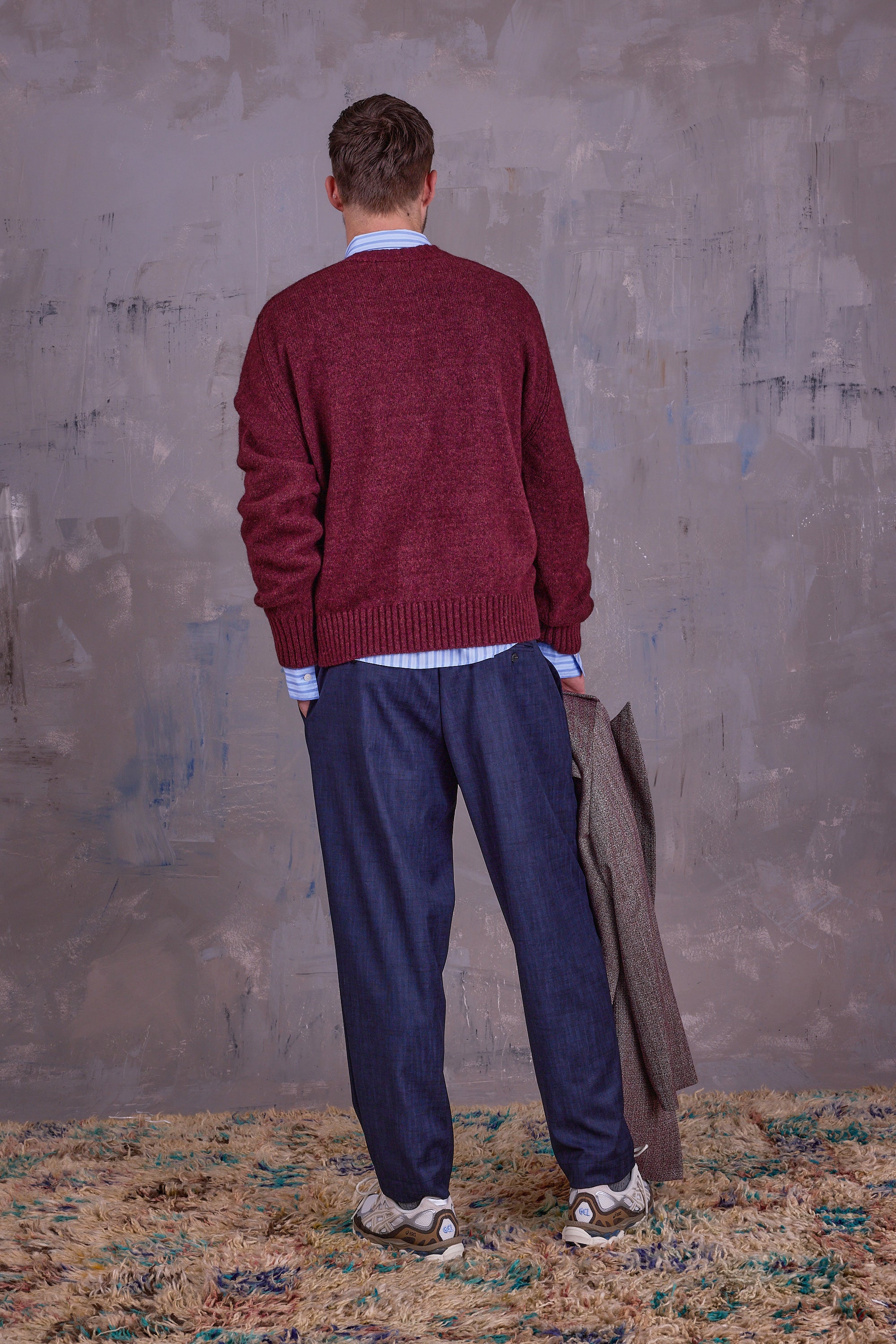 Trui in katoen-alpaca wolmix, gebreid in België. Het type trui waar je in wil wonen als het koud is.